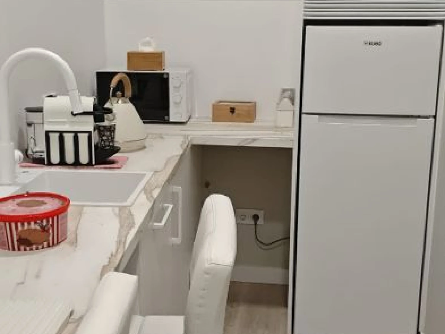 La iluminación LED resalta cada rincón de este espacio de 80 m² construidos, creando un ambiente acogedor y eficiente. Todos los servicios están incluidos: alarma, wifi de alta velocidad, gastos de comunidad e IBI.
