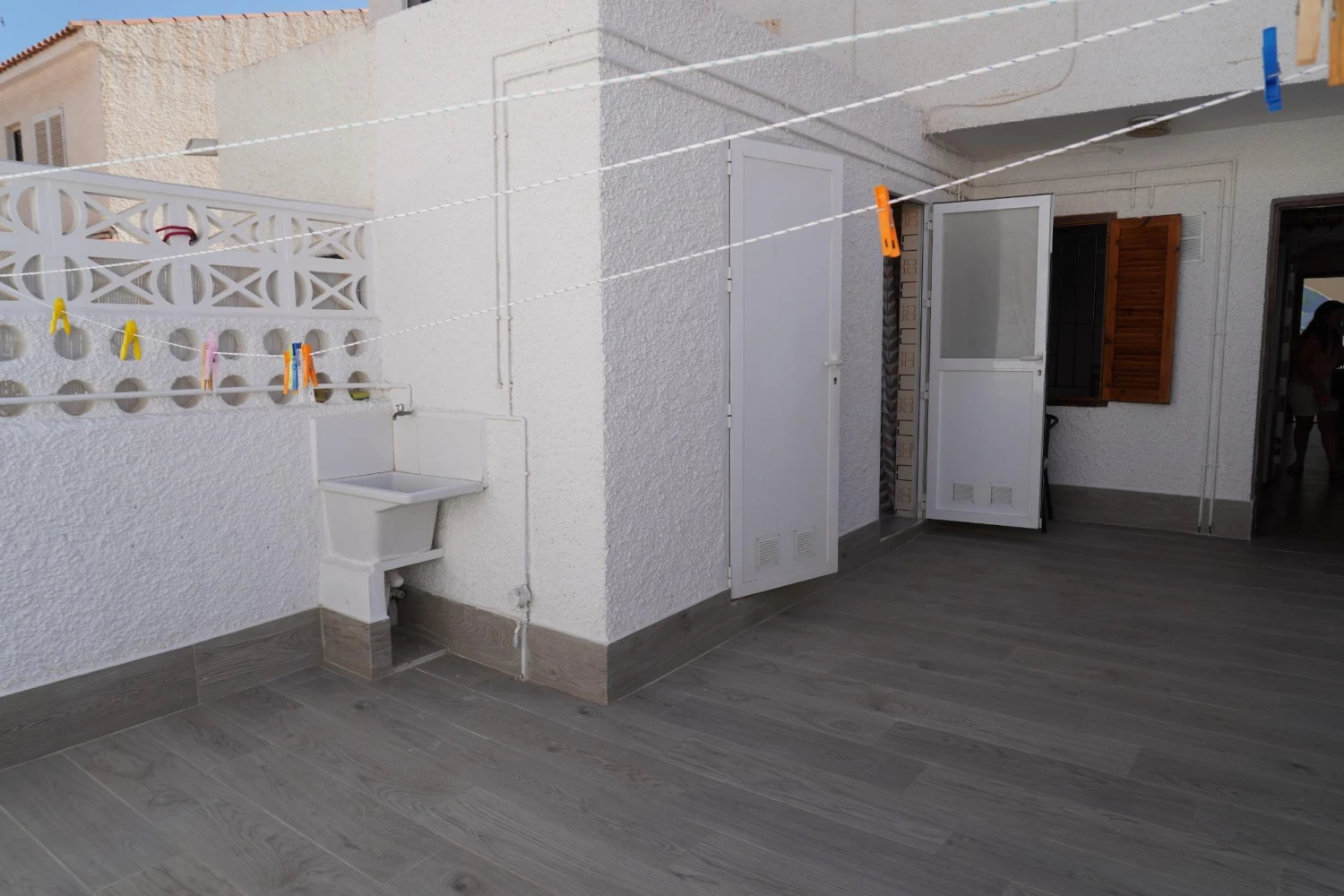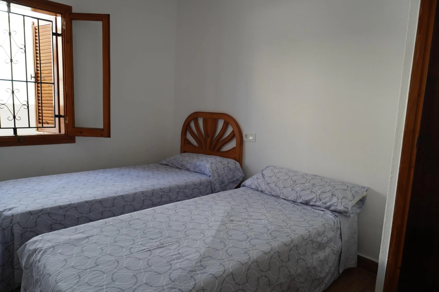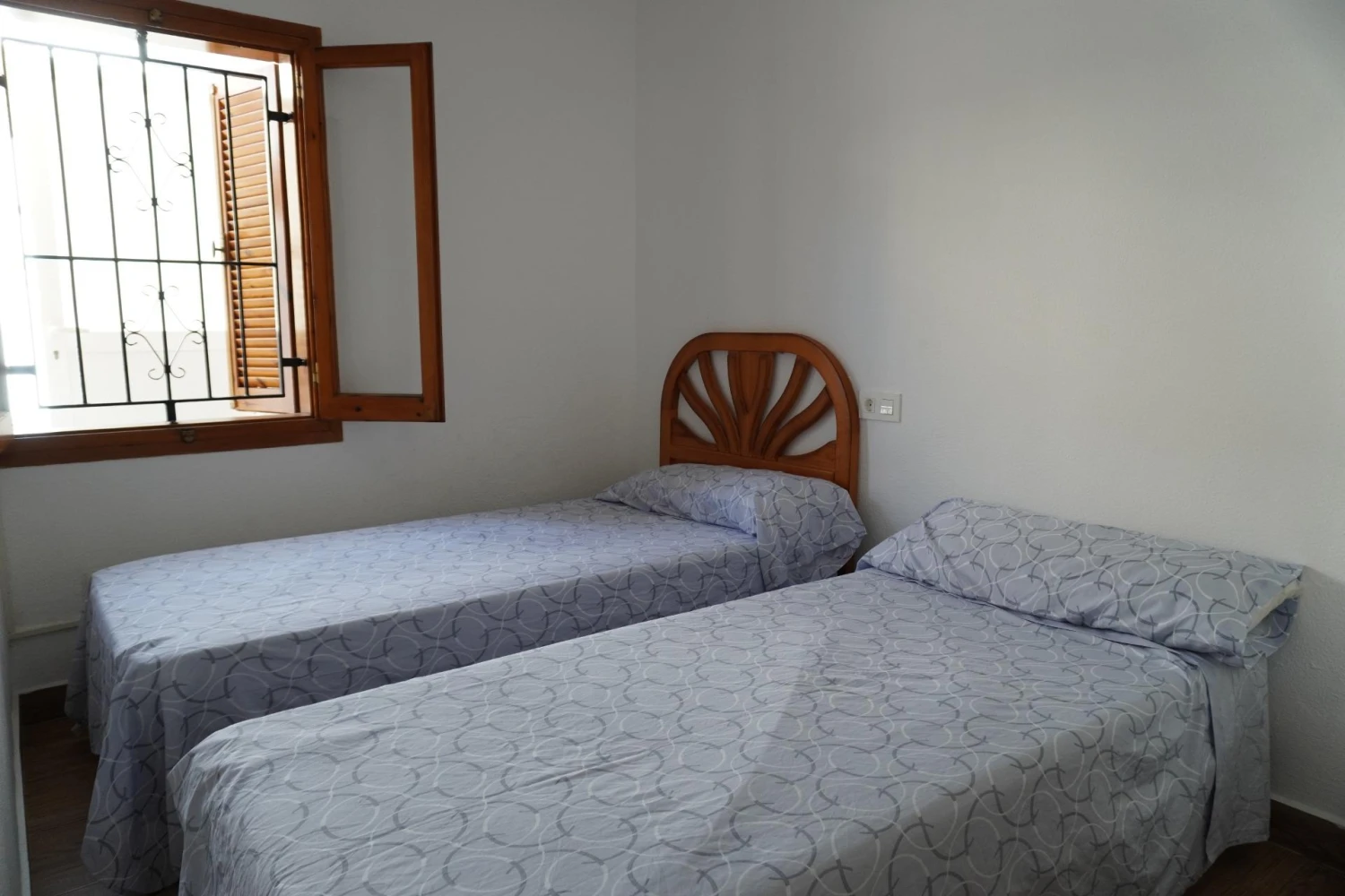 Subiendo por la escalera revestida de suave tarima, descubrirás tres dormitorios: el principal, con amplio armario empotrado, aire acondicionado y ventilador de techo; los otros dos, igualmente espaciosos y frescos gracias a sus ventiladores, perfectos para alojar a familia o amigos. El baño principal, con plato de ducha extraíble, combina diseño y funcionalidad para tu máxima comodidad.