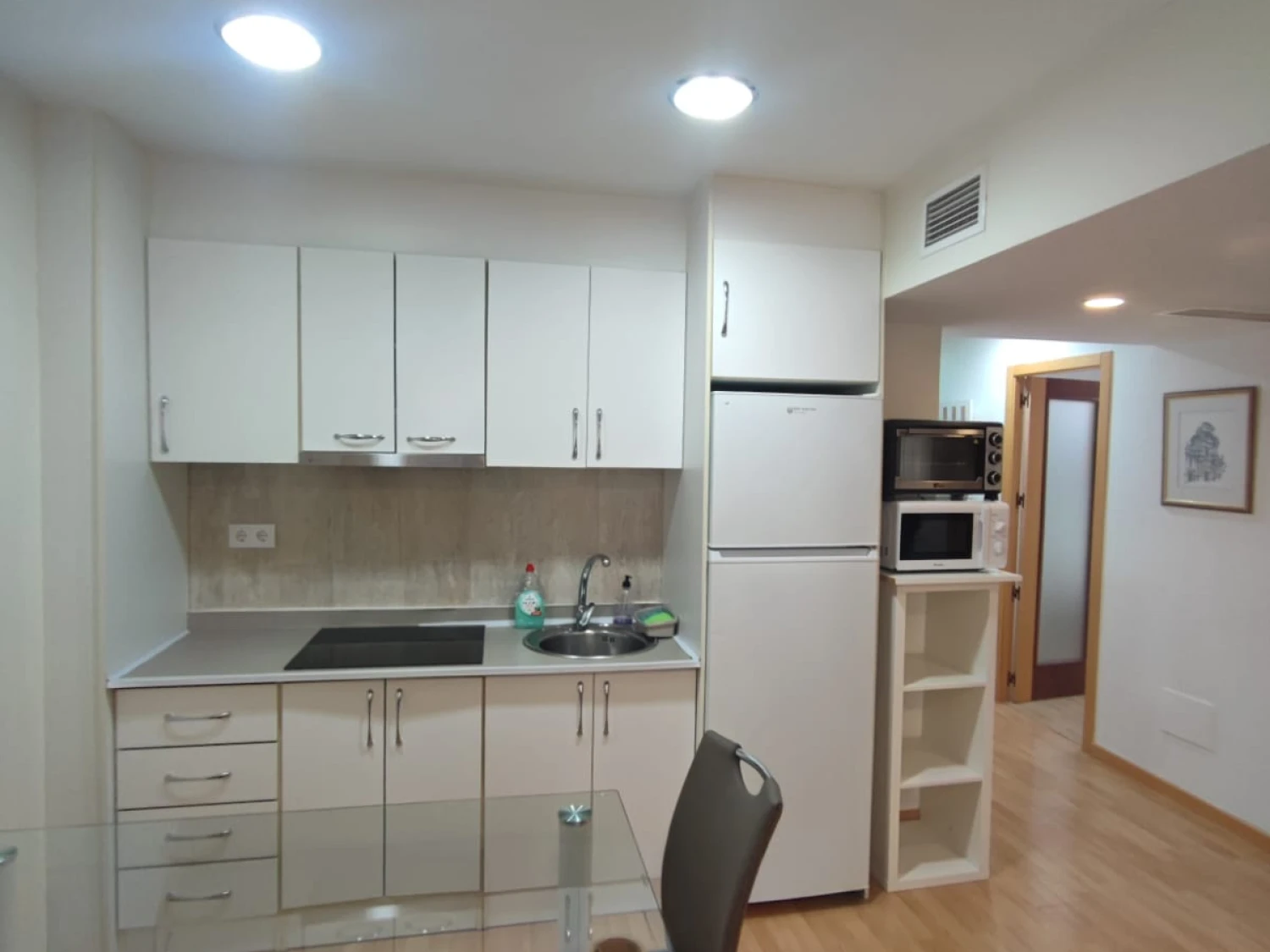 La cocina es amplia, luminosa abierta al salón está amueblada y equipada completa con electrodomésticos. Además cuenta con aire acondicionado.