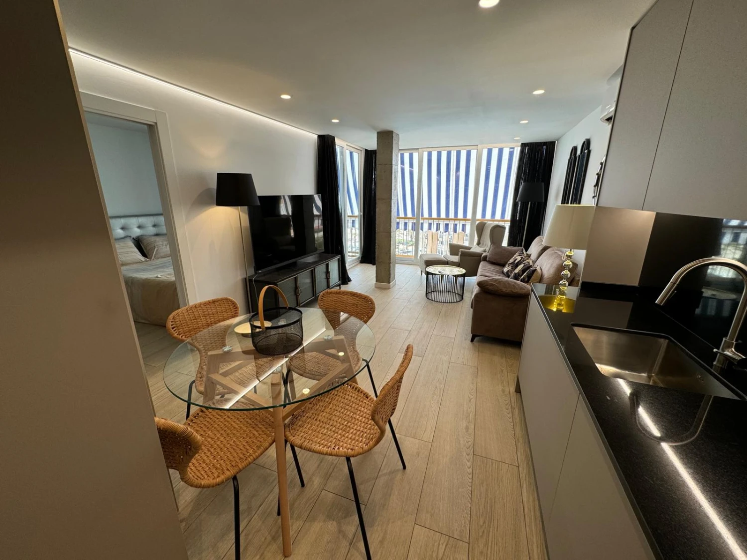 Piso de 2 habitaciones y 1 baño que cuenta con una superficie de 90 metros cuadrados. Se encuentra amueblado y la cocina con electrodomésticos. Como características cuenta con: parking, nevera, lavadora, lavavajillas, horno, microondas, secadora, televisión, balcón, terraza, ascensor, con vistas al mar, exterior, calefacción, aire/acond., piscina y zonas verdes.