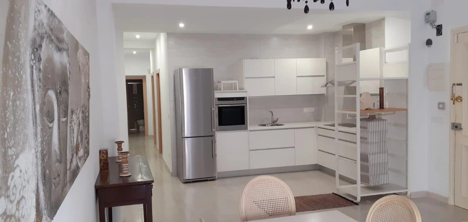 Piso de 2 habitaciones y 2 baños que cuenta con una superficie de 96 metros cuadrados. Se encuentra amueblado y la cocina con electrodomésticos. Como características cuenta con: balcón, ascensor, exterior, nevera, lavadora, secadora, horno y televisión.