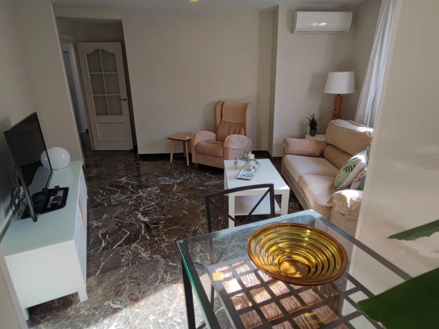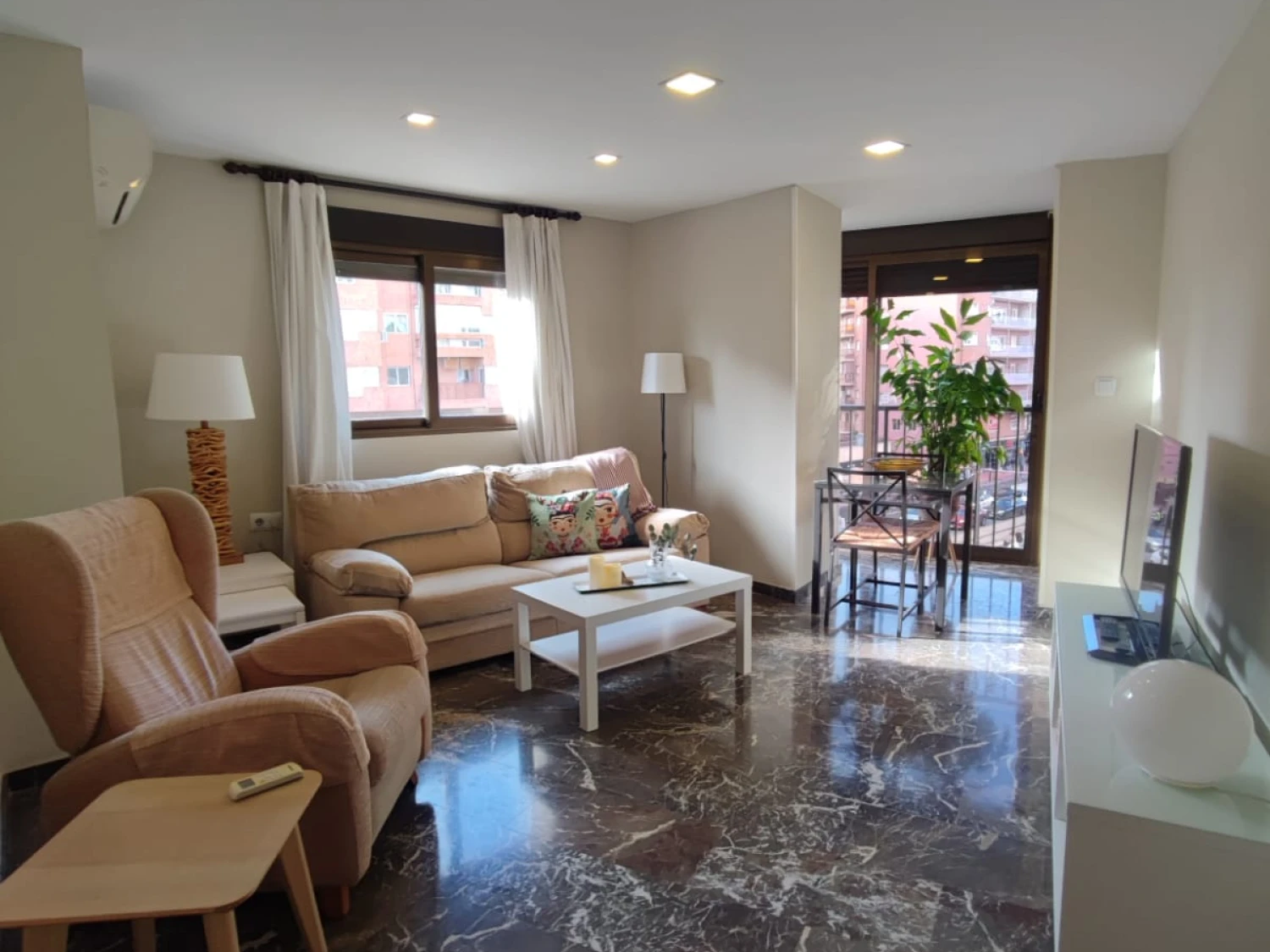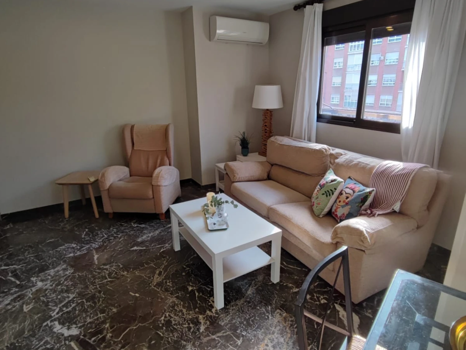 El salón, amplio y exterior, se conecta con una galería que aporta aún más luz natural. Para tu confort durante todo el año, la vivienda dispone de aire acondicionado.