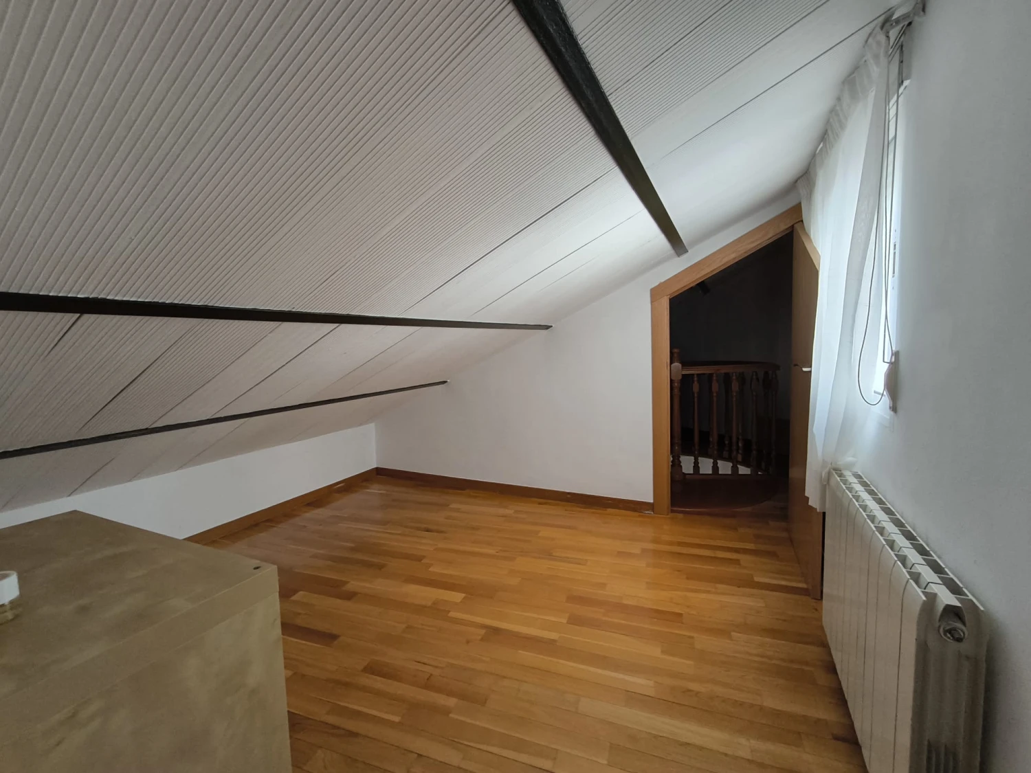 Ubicado en una cuarta planta con ascensor, el ático ofrece una distribución cómoda y muy funcional. Cuenta con tres dormitorios, uno de ellos con una encantadora buhardilla, perfecta como despacho, zona de estudio o espacio creativo. Dispone además de dos baños completos, diseñados para aportar comodidad y practicidad en el día a día.