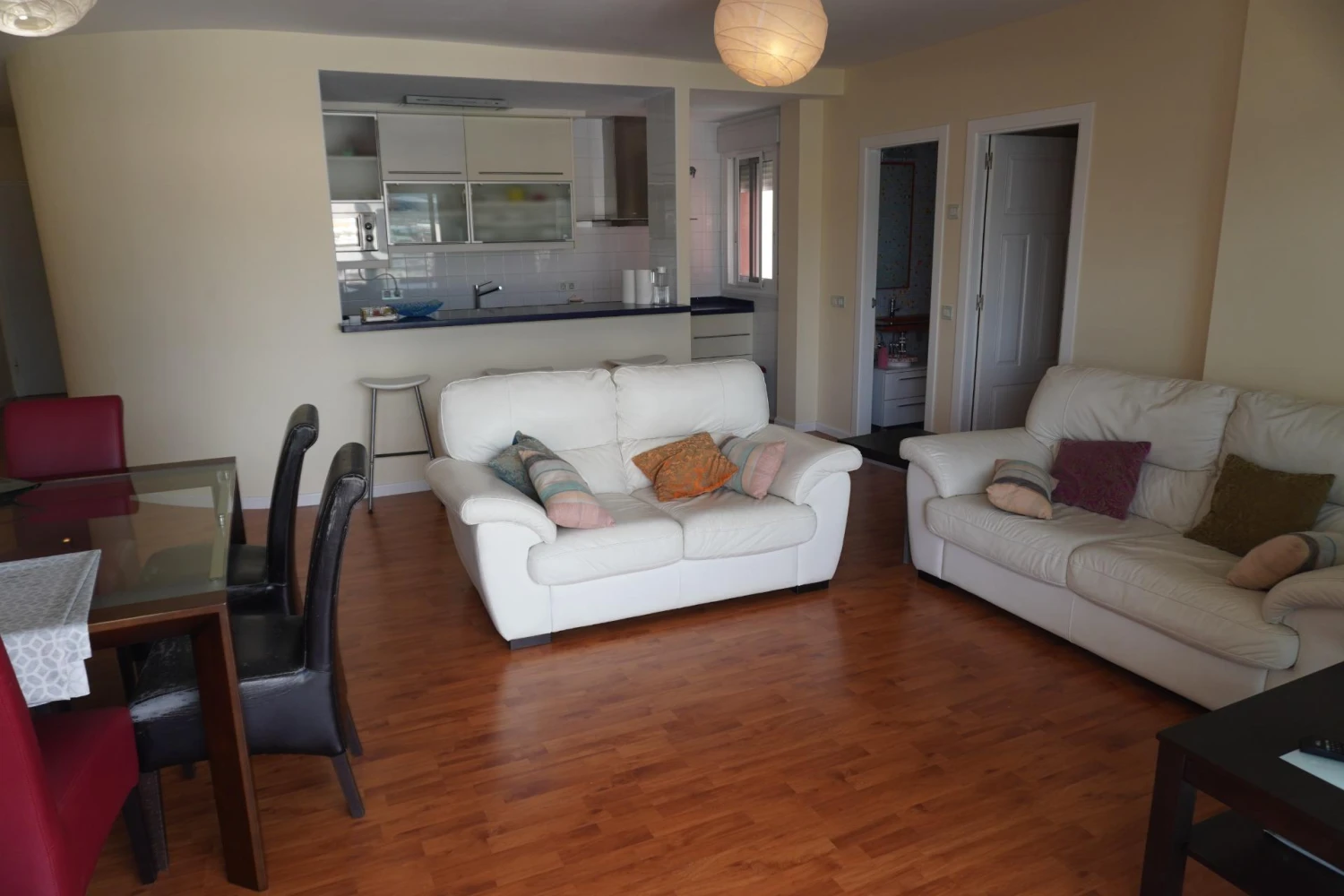 La vivienda cuenta con dos habitaciones, un gran salón y, lo mejor de la casa, una amplia terraza desde la que podrás disfrutar del amanecer de una manera única. Además, el residencial dispone de piscina.