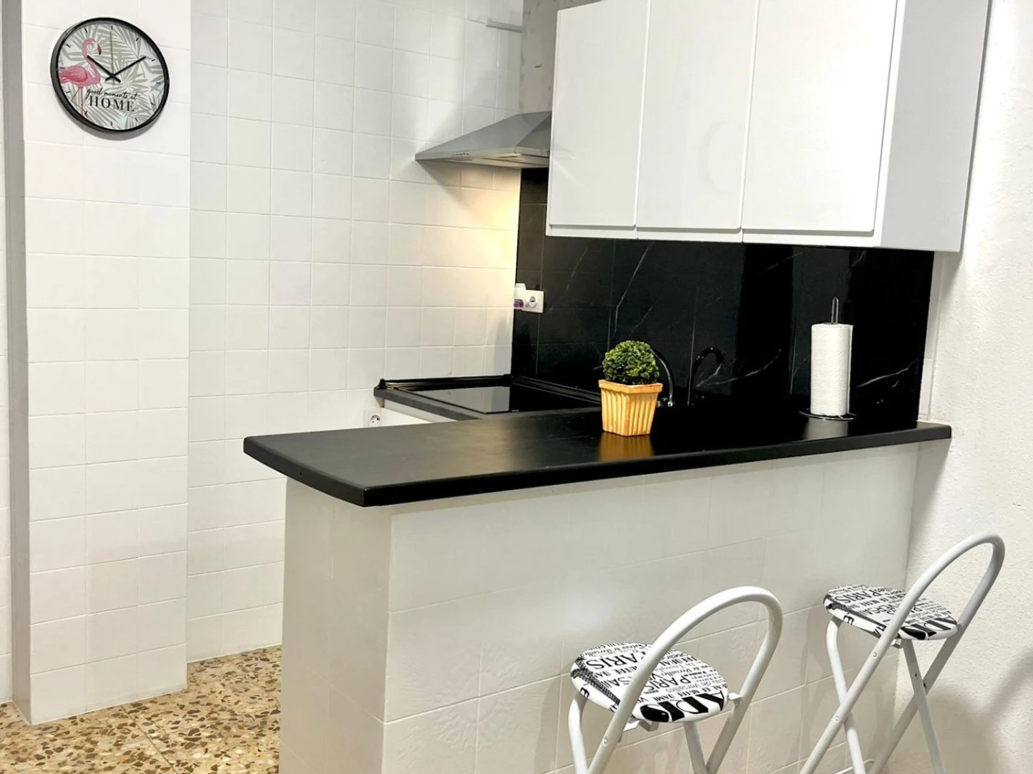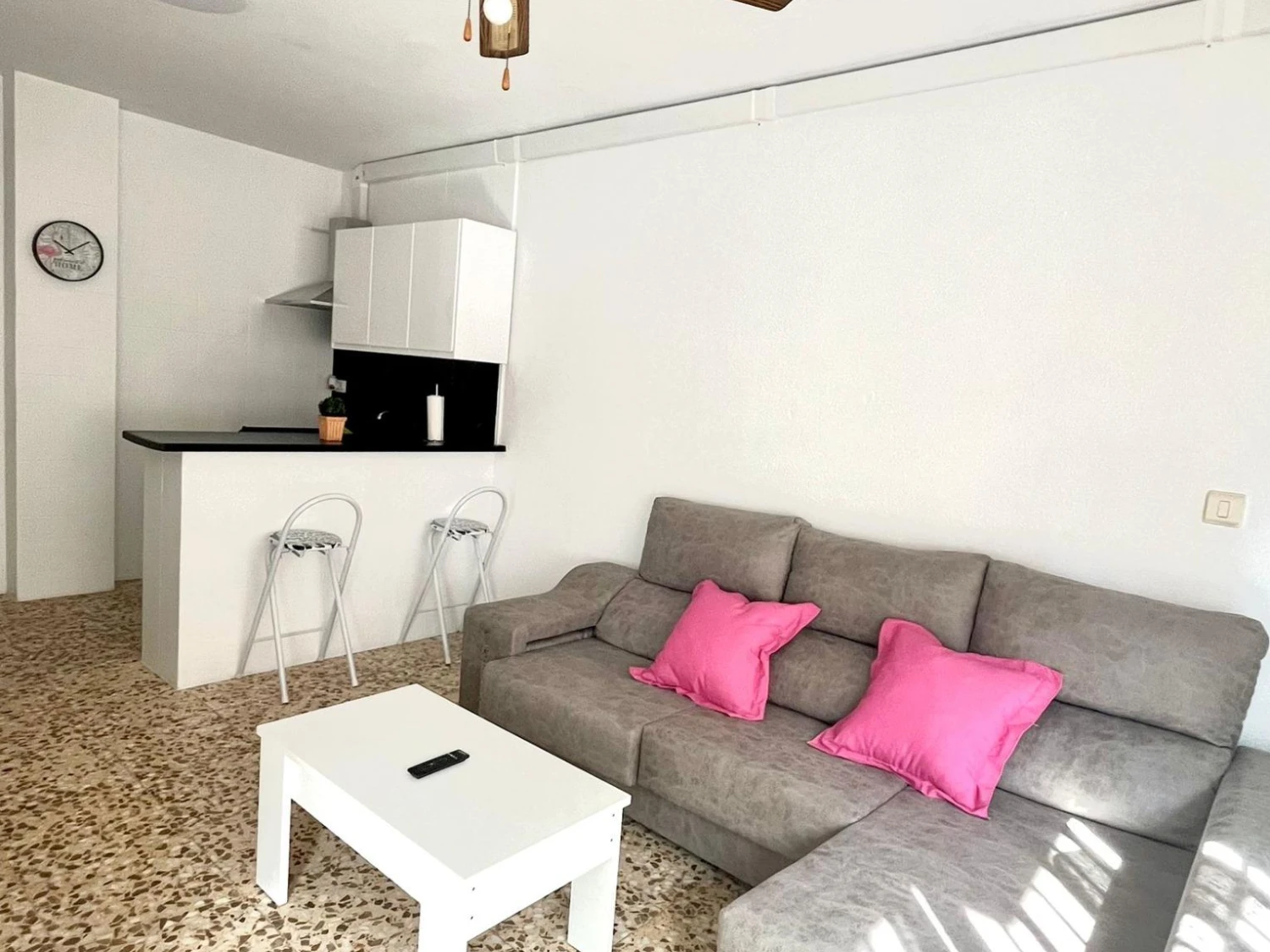 Se vende estupendo piso situado en una zona céntrica y muy bien comunicada, a menos de 10 minutos a pie de la playa del Puerto. La vivienda ha sido completamente renovada y se entrega totalmente amueblada con mobiliario moderno y funcional.