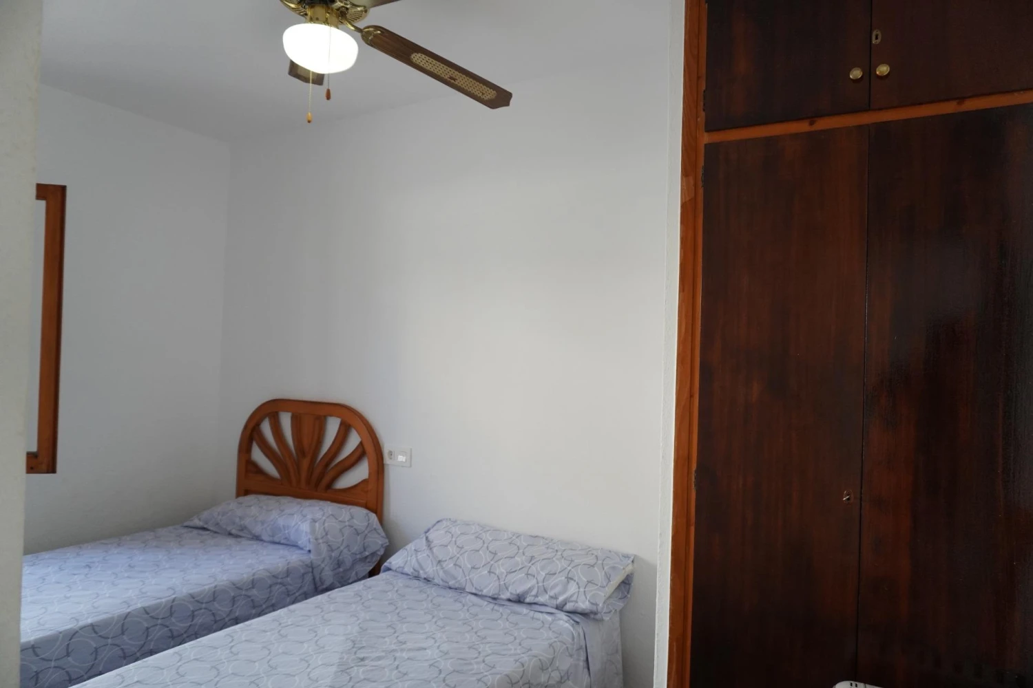 Subiendo por la escalera revestida de suave tarima, descubrirás tres dormitorios: el principal, con amplio armario empotrado, aire acondicionado y ventilador de techo; los otros dos, igualmente espaciosos y frescos gracias a sus ventiladores, perfectos para alojar a familia o amigos. El baño principal, con plato de ducha extraíble, combina diseño y funcionalidad para tu máxima comodidad.