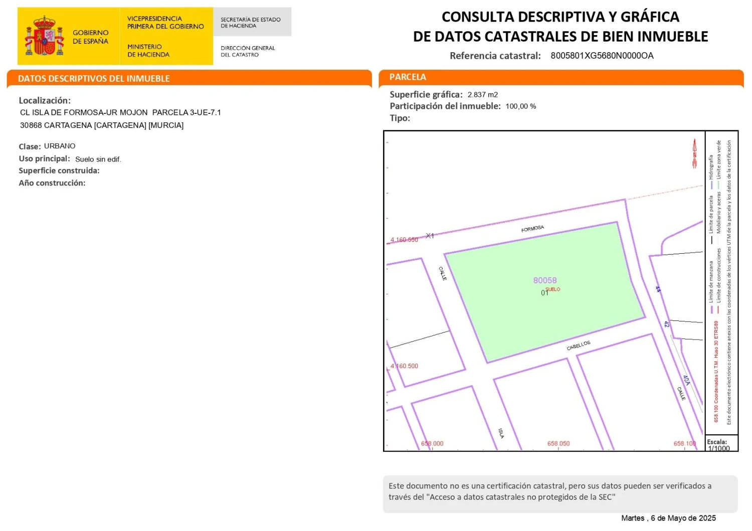 La parcela cuenta con una superficie total de 2.836, 71 m², clasificada para uso residencial, lo que permite la construcción de un conjunto de viviendas unifamiliares o adosadas en un entorno privilegiado.