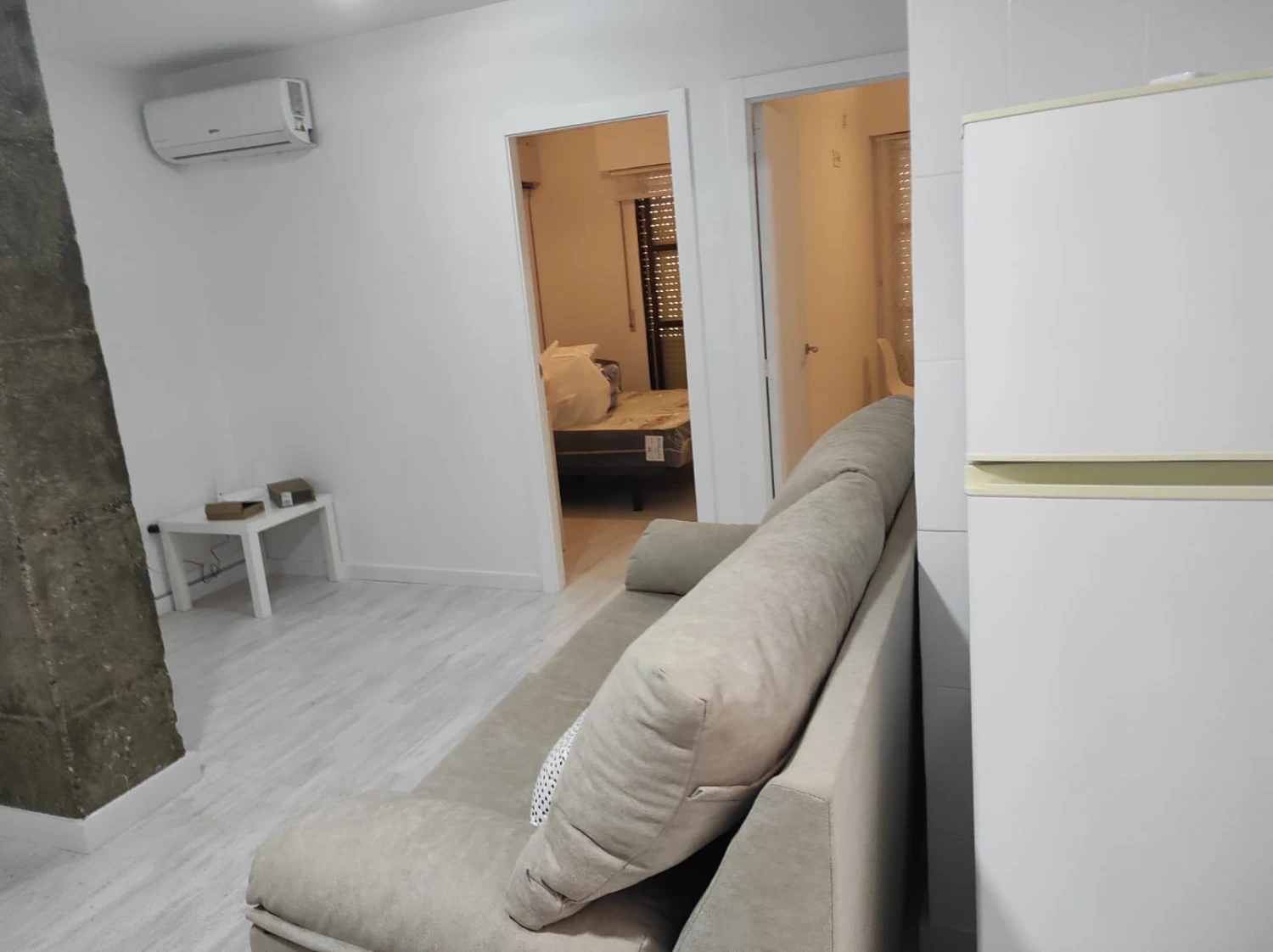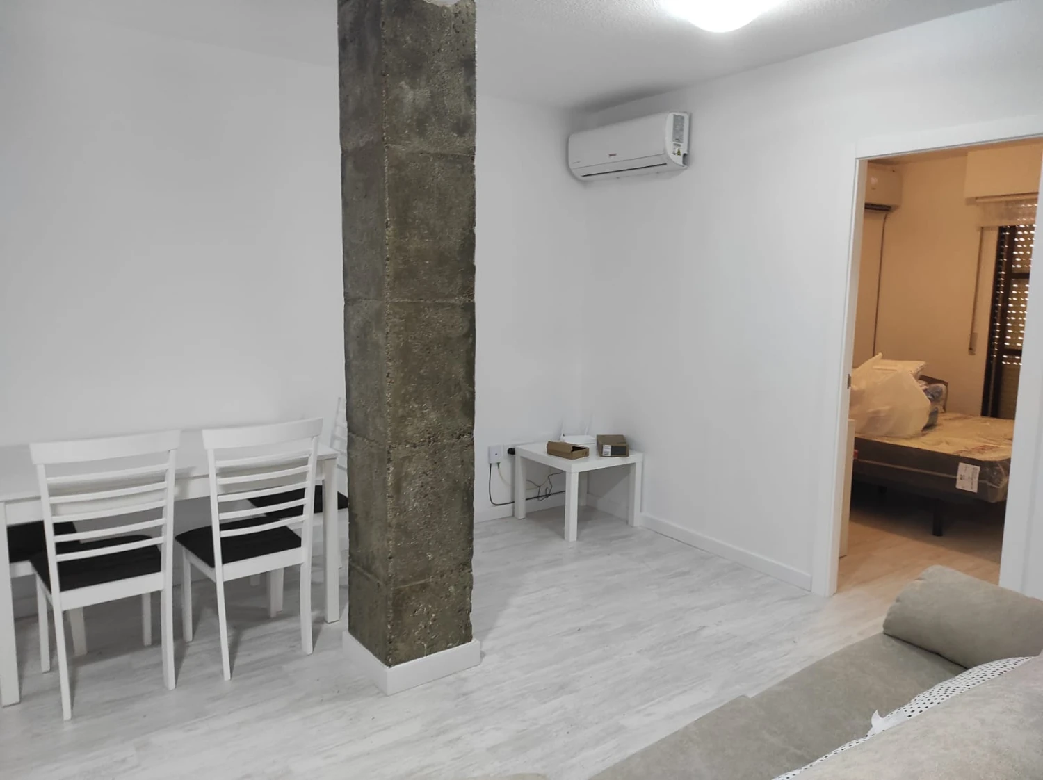 El piso se alquila amueblado, con cocina equipada con electrodomésticos, listo para entrar a vivir. El suelo de terrazo aporta carácter y fácil mantenimiento, mientras que el aire acondicionado garantiza confort durante todo el año.